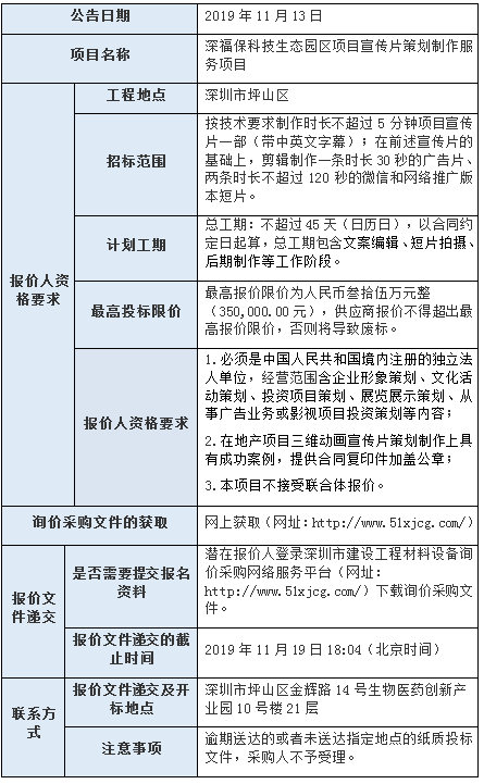 必一运动科技生态园区项目宣传片策划制作服务项目(项目名称)采购方(采购人)为深圳市大工业区(深圳出口加工区)开发管理集团有限公司(采购人单位名称),采购资金来自企业自筹(资金来源),项目出资比例为100%。项目已具备采购条件,现进行公开询价采购。