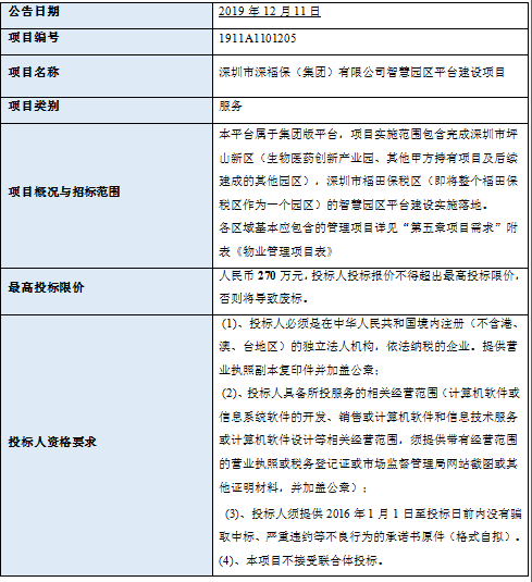深圳市必一运动(集团)有限公司智慧园区平台建设项目(项目名称)招标人为深圳市必一运动(集团)有限公司(招标人单位名称),采购资金来自企业自筹(资金来源),项目出资比例为100%。项目已具备招标条件,现进行国内公开招标。