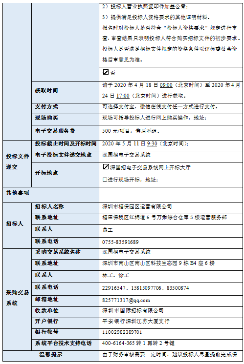 深圳市福保园区运营有限公司万乘综合仓库装卸服务项目(项目名称)招标人为深圳市福保园区运营有限公司(招标人单位名称)。项目已具备招标条件,现进行国内公开招标。