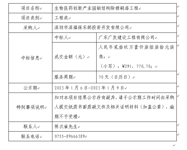 生物医药创新产业园钢结构除锈刷漆工程中标结果公示