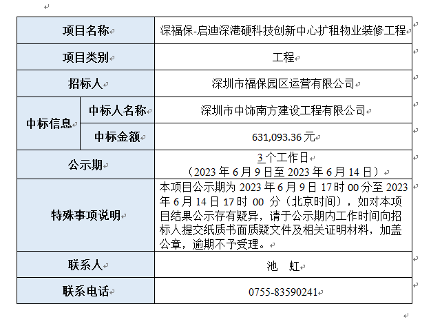 必一运动-启迪深港硬科技创新中心扩租物业装修工程已完成评审,现将本项目评审的相关情况及结果进行公示,具体内容如下: