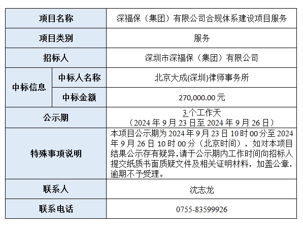 深圳市必一运动(集团)有限公司合规体系建设项目服务已完成评审,现将本项目评审的相关情况及结果进行公示,具体内容如下: