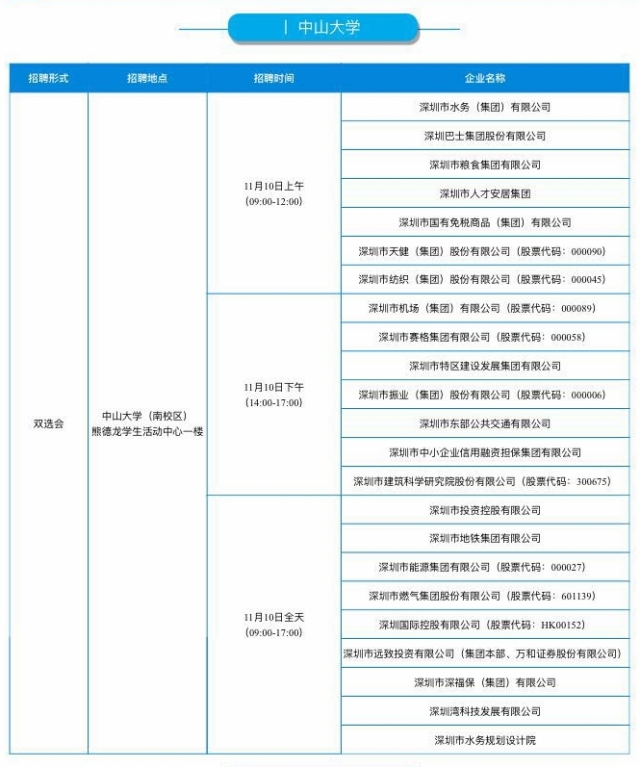 深爱人才,圳等你来!2017年11月10-11日,深圳市国资委将组织18家直管企业,赴广州中山大学、华南理工大学等高校举办首届市属国资国企校园招聘系列活动,计划招聘应届毕业生1400余人,提供岗位400余个。