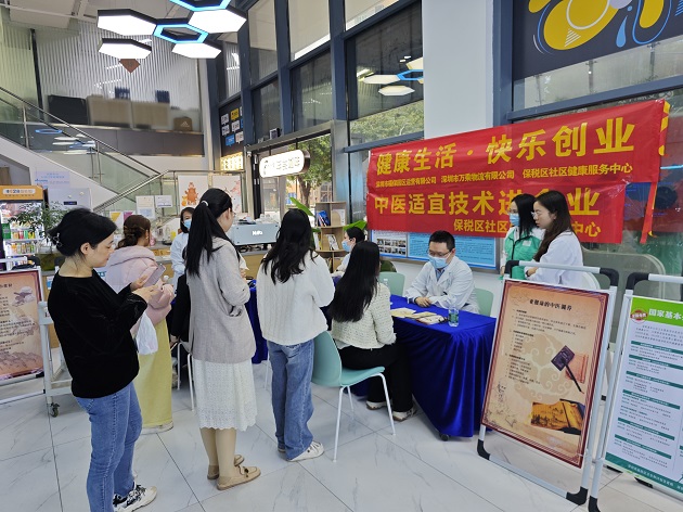 中医义诊贴心服务,广受好评。讲座结束后,社康中心专家团队为活动参与人员提供一对一健康服务。现场设置免费血压、血糖检测区,帮助员工快速掌握基础健康指标;中医特色体验区人头攒动,推拿、针灸、耳穴压豆、刮痧等中医理疗活动深受欢迎,医师根据个体情况现场把脉问诊,提供个性化调理建议。通过专家指导,入孵企业职工对自身健康状况有了更清晰的认识,也学到了实用的养生方法。